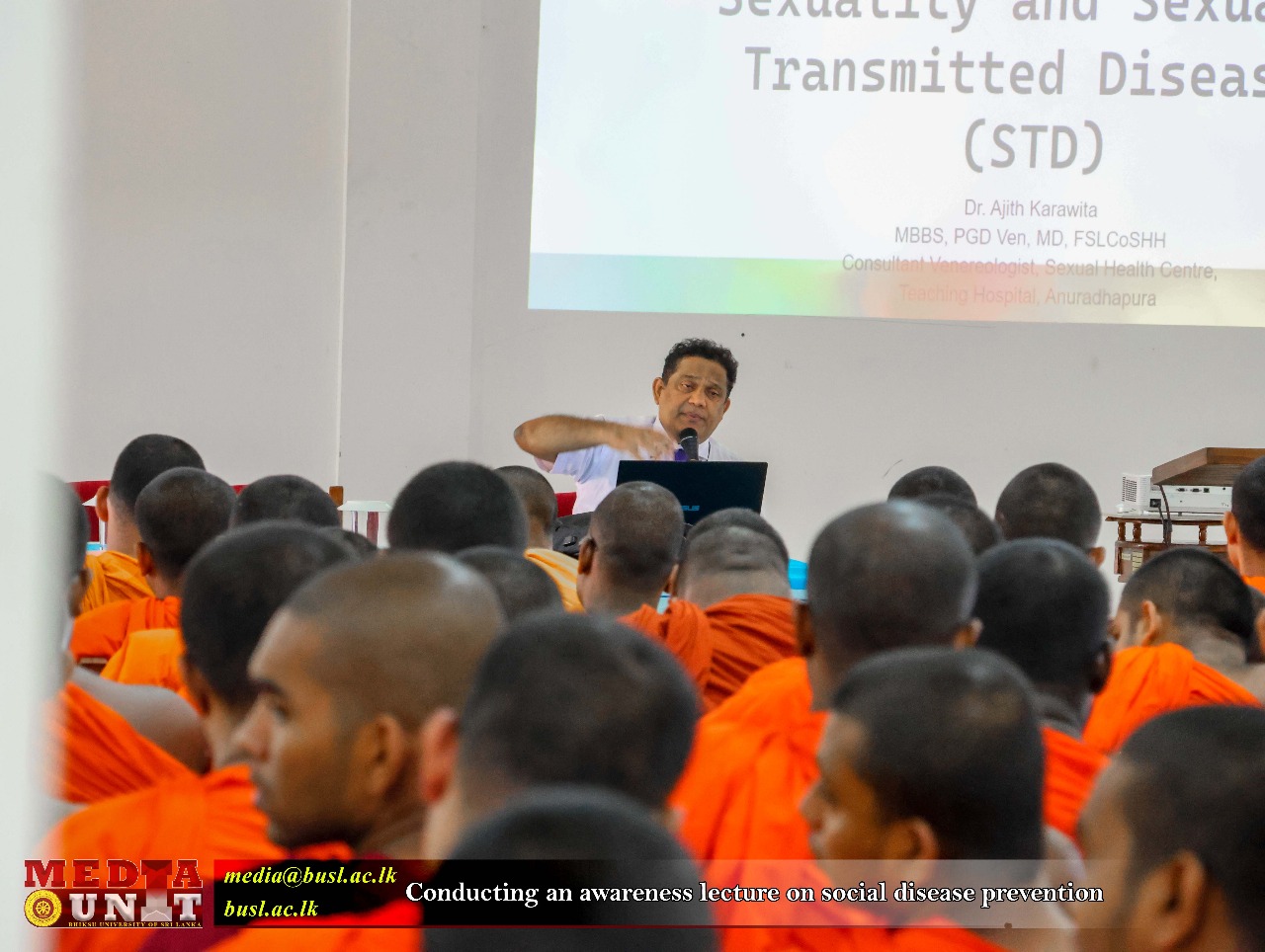 An awareness lecture on “Social Disease Prevention” was successfully conducted at the Bhiksu University of Sri Lanka on 24 September 2025. The programme was organized by the Student Services Division as part of its initiatives to promote health awareness and responsible behavior among students.