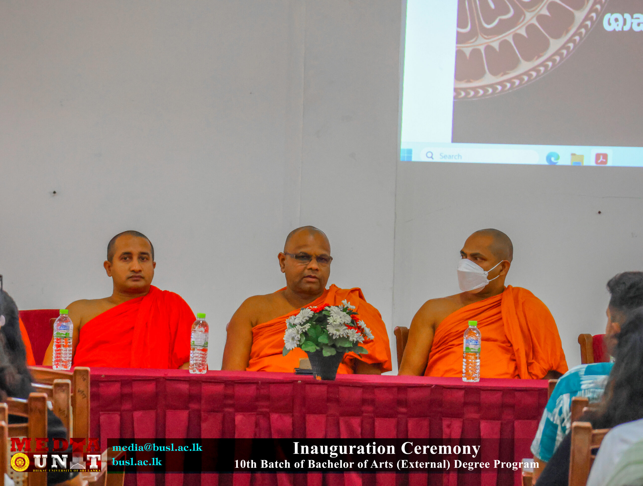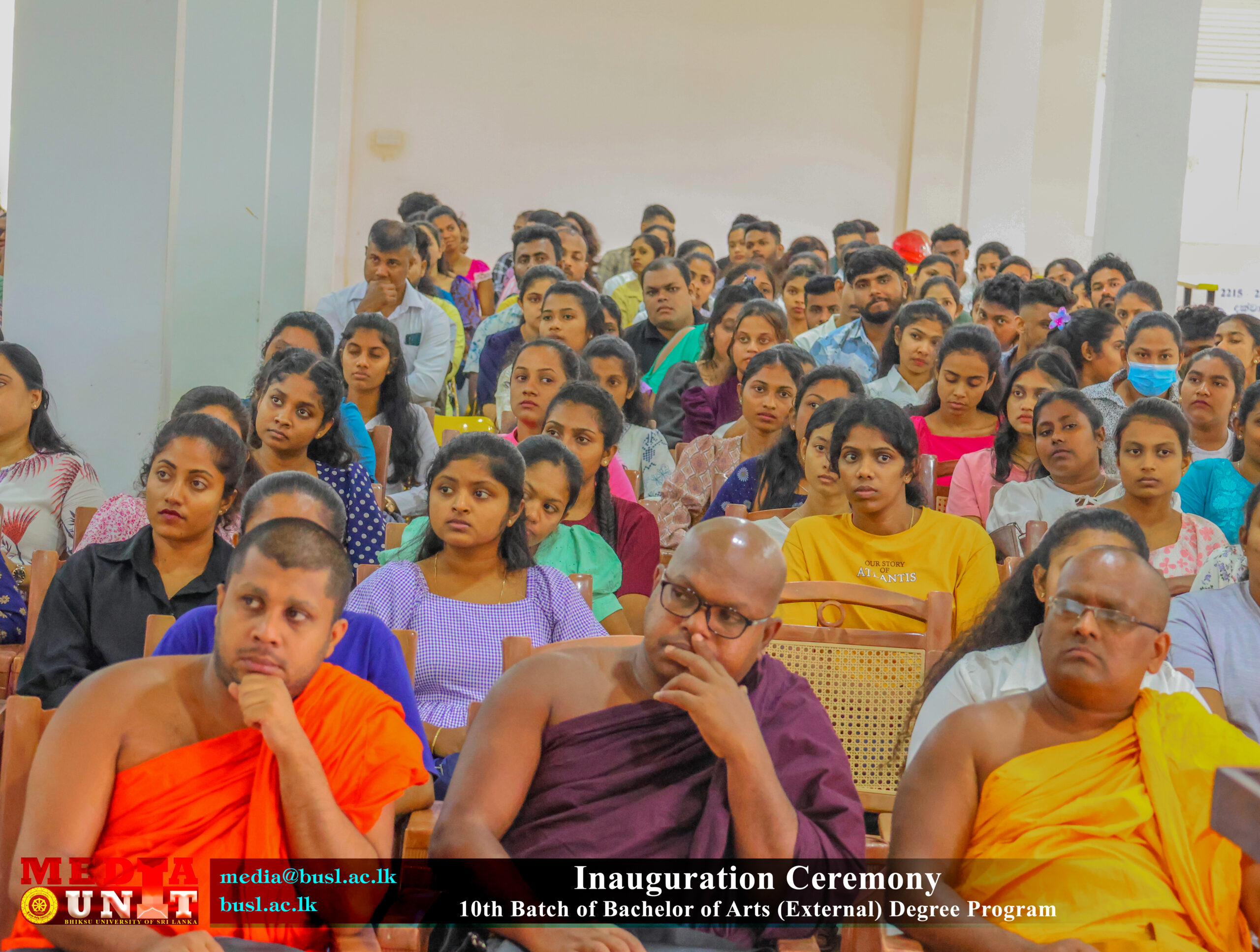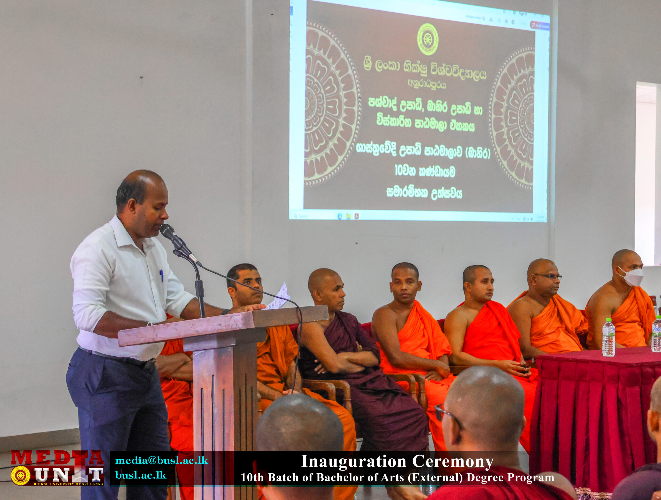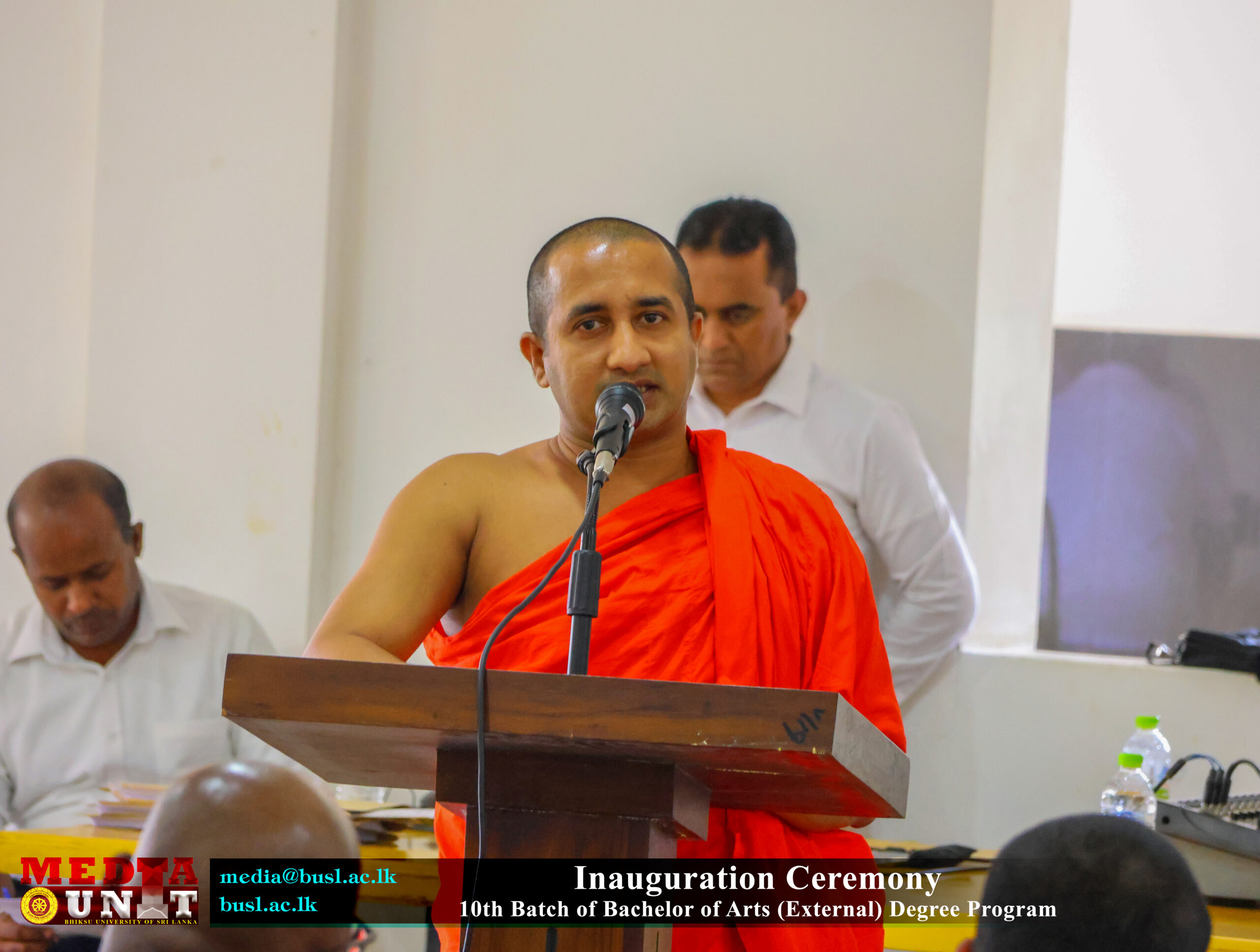 The Chief Guest, Emeritus Professor C. M. Maddumabandara, former Vice-Chancellor of the University of Peradeniya and a member of the Senate of the Bhiksu University of Sri Lanka, delivered the guest speech.  Further addresses were delivered by Mr. S. Aruna Indika Somarathna, Registrar of the University; Mr. S. K. Illangarathna, Librarian of the University; and Mr. L. P. K. Gunatilake, Senior Assistant Registrar (Examinations).
