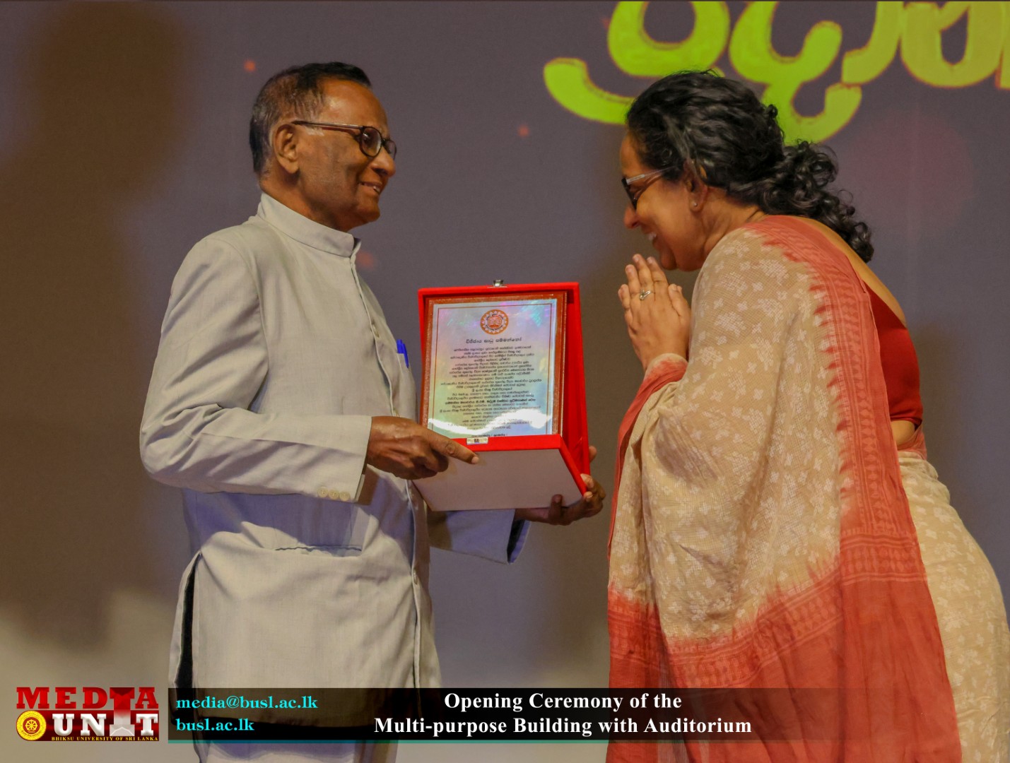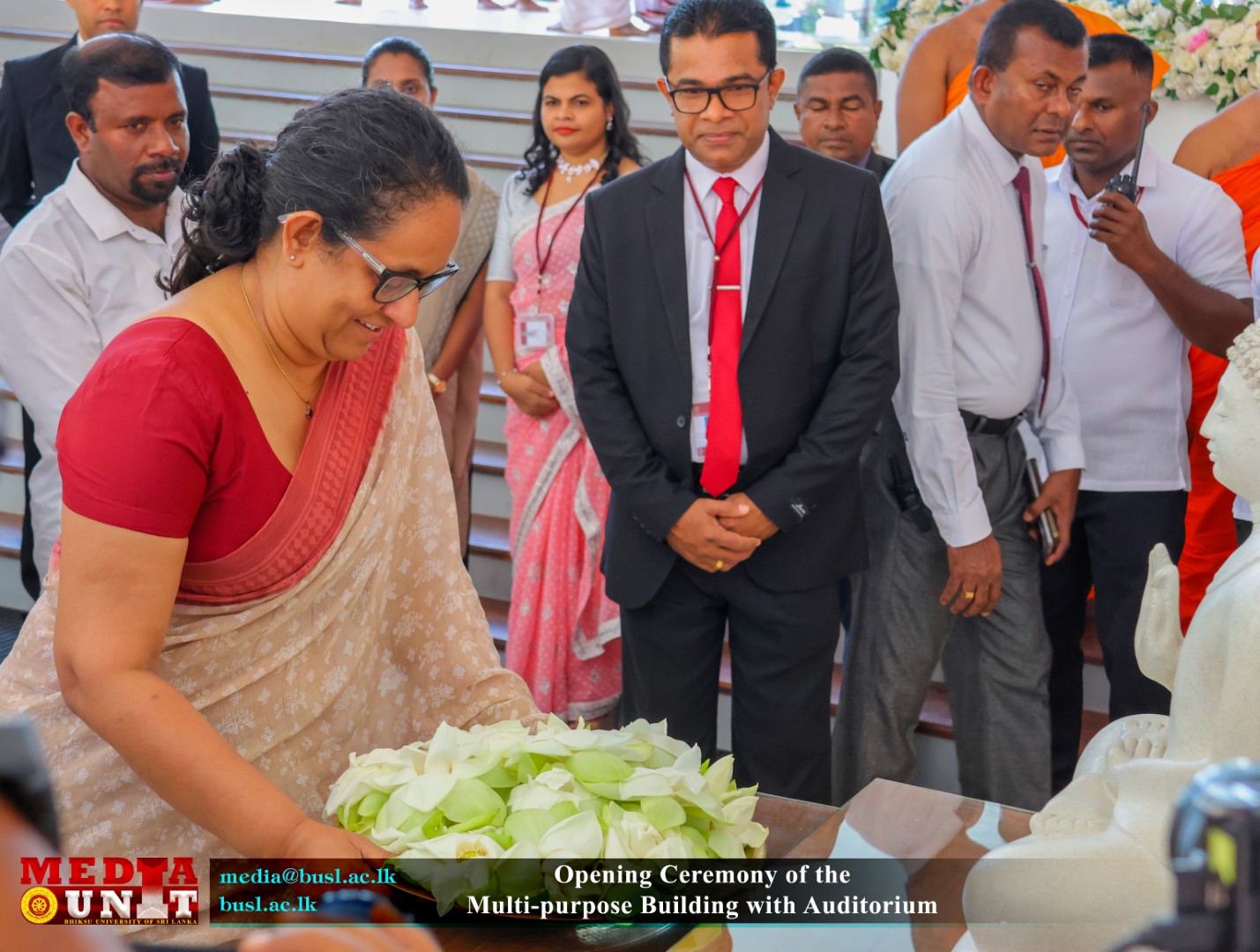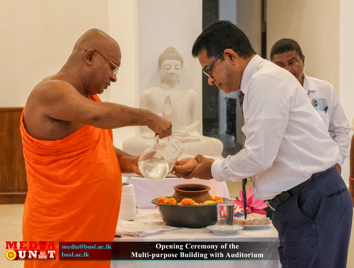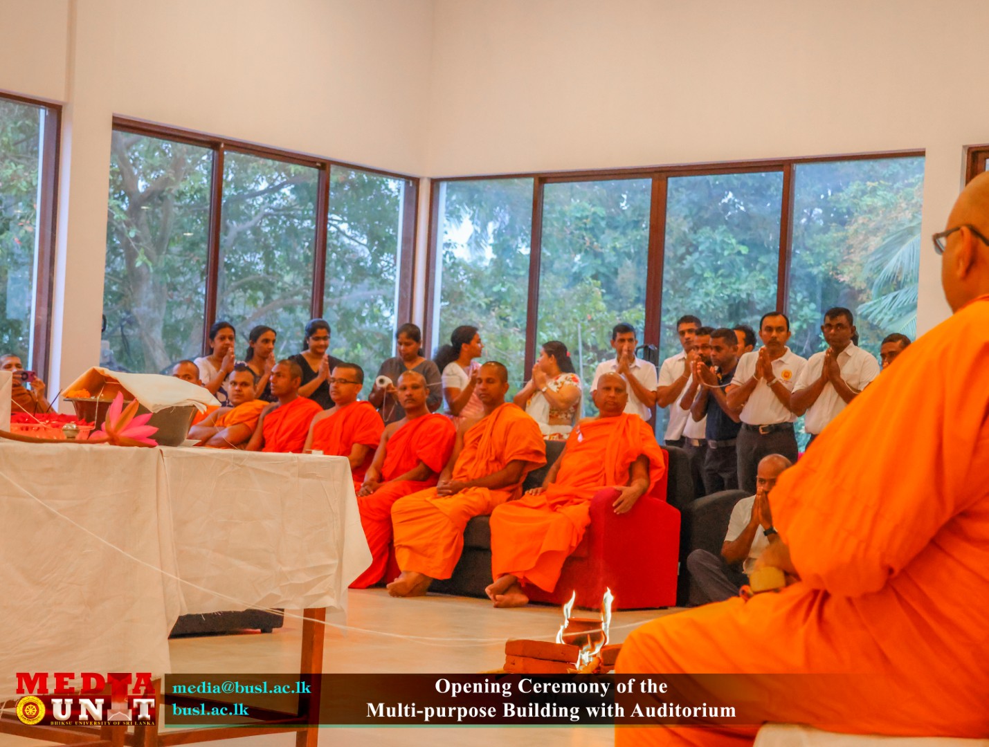 The building complex was ceremonially declared open by the Prime Minister of the Democratic Socialist Republic of Sri Lanka and the Minister of Education, Higher Education and Vocational Education, under the patronage of Most Venerable Karagoda Uyangoda Maithree Moorthi Nayaka Thero, Most Ven. Chancellor and Honorary Mahanayaka of the Sri Lanka Amarapura Maha Nikaya on the honourable invitation of Vice Chancellor of the University, Most Ven. Senior Professor Kanattegoda Saddharatana Anunayaka Thera. The event was attended by Mr. S. Aruna Indika Somarathna, Registrar of the University and a distinguished gathering of members of the Maha Sangha, the Bursar, Librarian and University officials, academic and non-academic staff and invited dignitaries.